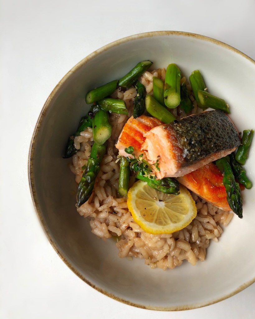 ·Zitronen-Thymian-Risotto mit grünem Spargel & Lachs·